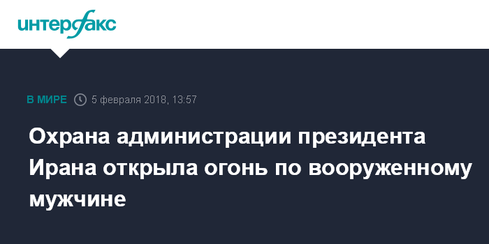 Москва. 5 февраля. INTERFAX.RU - Охранникам администрации президента Ирана пришлось открыть огонь для предотвращения проникновения в здание вооруженного мужчины.
