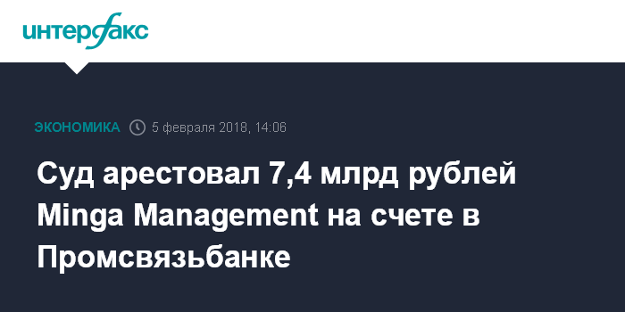 Суд арестовал 7,4 млрд рублей Minga Management на счете в Промсвязьбанке
