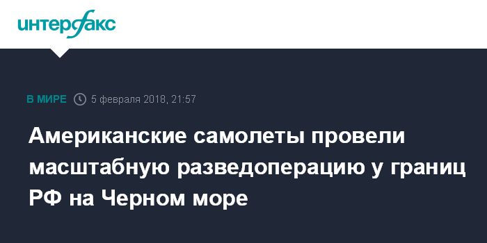 Согласно имеющимся в распоряжении "Интерфакса" данным, с начала текущего года зафиксировано не менее шести полетов американских беспилотников у побережья Крыма и Краснодарского края, в том числе 7, 9, 15, 25, 26 января и 5 февраля. Кроме того, американские морские разведчики Poseidon за это время также совершили, по меньшей мере, семь полетов - 1, 7 (дважды), 9, 15, 26 января и 5 февраля. Еще один полет вблизи Крыма 29 января выполнил самолет радиоэлектронной разведки большого радиуса действия ВМС США EP-3E Aries II, который был перехвачен и сопровождался российским истребителем Су-27.