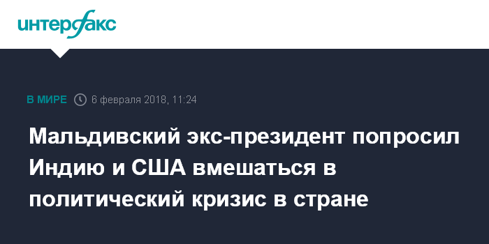 "Президент Ямин незаконно объявил военное положение и узурпировал государственную власть. Мы должны отстранить его от власти. У народа Мальдив есть законный призыв (по этому поводу - ИФ) к правительствам мировых держав, особенно к Индии и США", - приводят СМИ выдержки из заявления Нашида.