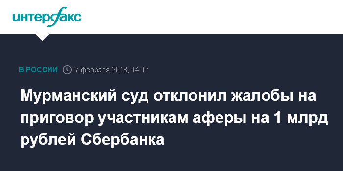 Мурманский суд отклонил жалобы на приговор участникам аферы на 1 млрд рублей Сбербанка