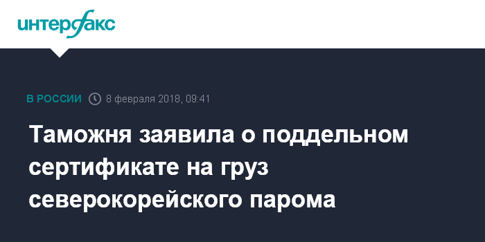 Таможня заявила о поддельном сертификате на груз северокорейского парома