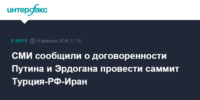 СМИ сообщили о договоренности Путина и Эрдогана провести саммит Турция-РФ-Иран