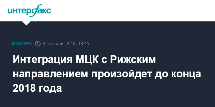 Москва. 8 февраля. INTERFAX.RU - Интеграция Московского центрального кольца (МЦК с Рижским направлением произойдет до конца текущего года. На участке Рижского направления платформа "Ленинградская" переносится ближе к МЦК, где будет организована пересадка на станцию "Стрешнево" центрального кольца. Об этом заявил мэр Москвы Сергей Собянин в четверг во время ознакомления с ходом работ по интеграции Рижского направления Московской железной дороги с Московским центральным кольцом.