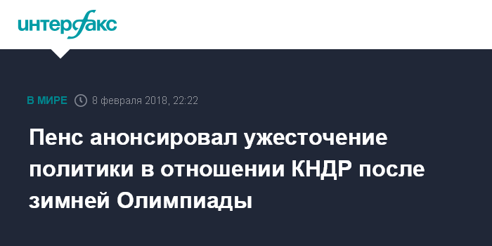 "Мы подтверждаем наше стремление продолжать изоляцию Северной Кореи экономически и дипломатически, и после Олимпийских игр, и когда Олимпиада станет отдаленным воспоминанием", - сказал Пенс корреспонденту The Washington Post, находясь на авиабазе Йокота в Японии. Он заявил, что если встретится с представителями КНДР, то призовет их "закончить эту эру обмана, провокаций, разработки ядерного оружия, запугивания региона и остального мира". О вероятной встрече Пенса с северокорейской делегацией на этой неделе неоднократно писали СМИ, однако КНДР заявила, что не заинтересована в такой возможности.