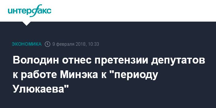 Москва. 9 февраля. INTERFAX.RU - Основные претензии к работе министерства экономического развития в ходе "правительственного часа" в среду касались периода, когда его возглавлял предыдущий министр Алексей Улюкаев, а не действующий - Максим Орешкин, заявил спикер Госдумы Вячеслав Володин.