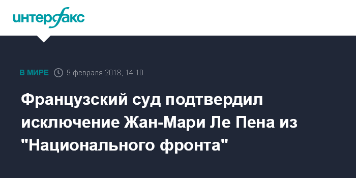 В то же время суд сохранил за Ле Пеном статус почетного председателя партии. В "Национальном фронте" в свою очередь отметили, что Ле Пену будет запрещено участвовать в конгресса партии, который пройдет 10-11 марта в Лилле.