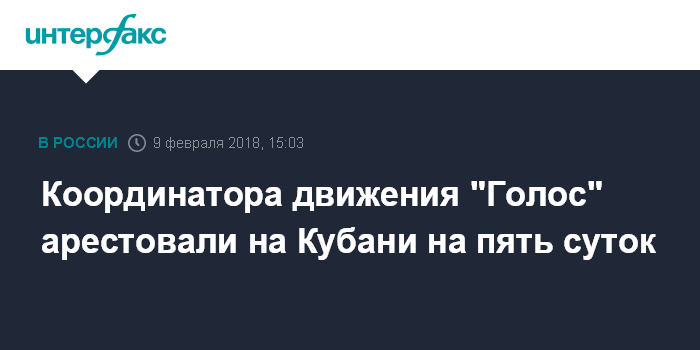 Координатора движения "Голос" арестовали на Кубани на пять суток