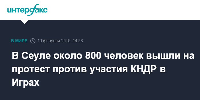 Москва. 10 февраля. INTERFAX.RU - Около 800 консервативно настроенных южнокорейских активистов в Сеуле приняли участие в акции протеста против участия северокорейских спортсменов в зимних Олимпийских играх в Пхенчхане, сообщает в субботу агентство "Ренхап".