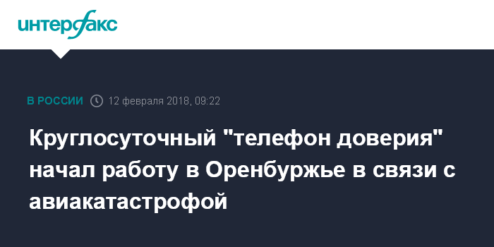 Круглосуточный "телефон доверия" начал работу в Оренбуржье в связи с авиакатастрофой