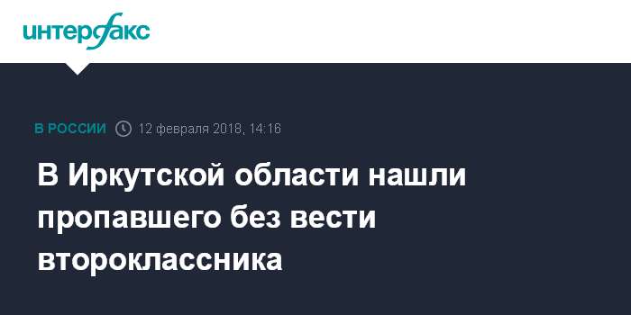 Москва. 12 февраля. INTERFAX.RU - Полицейские нашли 10-летнего мальчика, пропавшего без вести в начале февраля в городе Зима Иркутской области. Об этом сообщила в понедельник пресс-служба Главного управления МВД по региону.