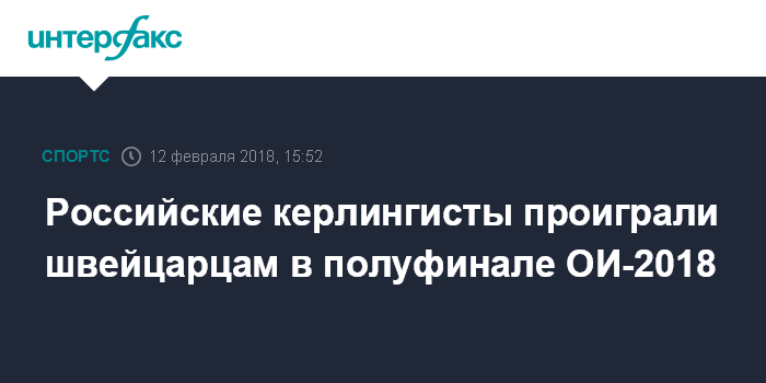 Москва. 12 февраля. INTERFAX.RU - Российские керлингисты Анастасия Брызгалова и Александр Крушельницкий уступили соперникам из Швейцарии в полуфинале олимпийского турнира в дабл-миксте.