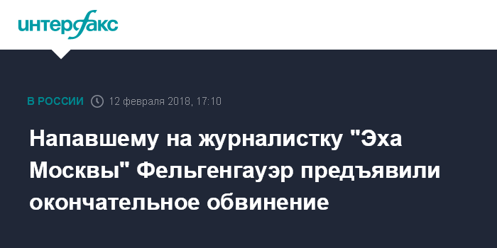 Напавшему на журналистку "Эха Москвы" Фельгенгауэр предъявили окончательное обвинение