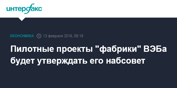 Пилотные проекты "фабрики" ВЭБа будет утверждать его набсовет