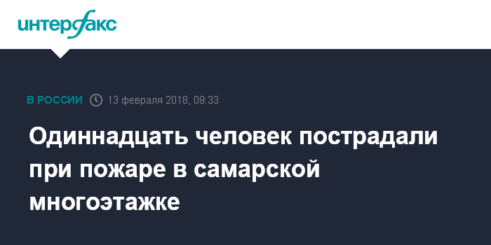 Москва. 13 февраля. INTERFAX.RU - Одиннадцать человек, в том числе двое детей, пострадали в результате пожара в девятиэтажном жилом доме в спальном районе Самары. Об этом сообщили агентству "Интерфакс" в областном центре медицины катастроф.