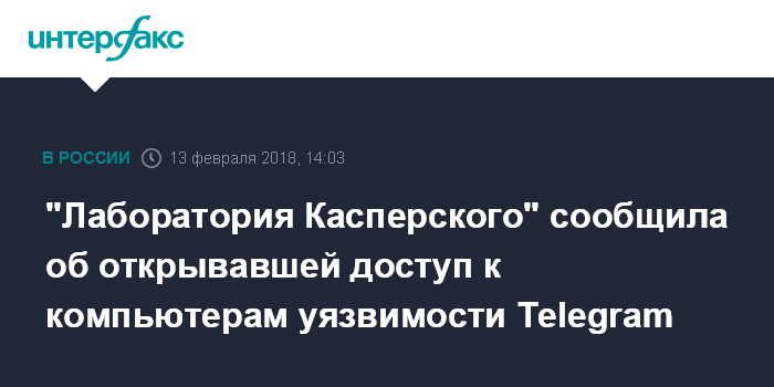 Москва. 13 февраля. INTERFAX.RU - Киберпреступники использовали уязвимость мессенджера Telegram для доступа к компьютерам российских пользователей, говорится в сообщении "Лаборатории Касперского".