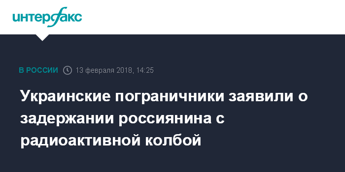 Москва. 13 февраля. INTERFAX.RU - Украинские пограничники задержали в пункте пропуска "Гоптовка" (Харьковская область) гражданина России, который пытался вывезти из Украины колбу с неизвестным веществом со значительным превышением радиационного фона.