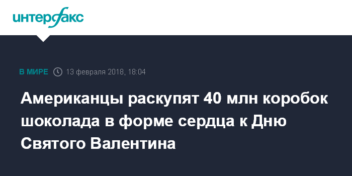 Американцы раскупят 40 млн коробок шоколада в форме сердца к Дню Святого Валентина