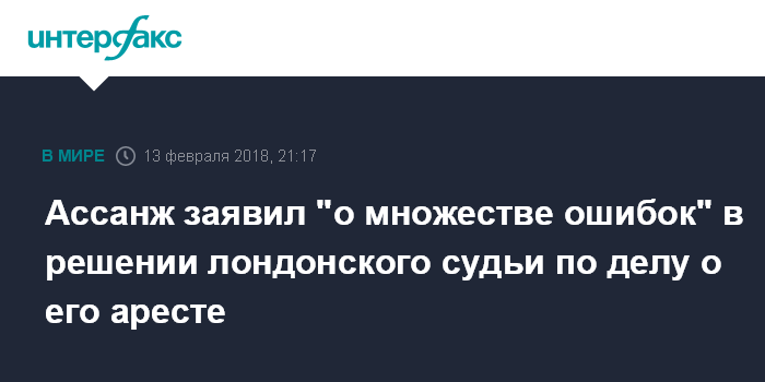"По всей видимости, это привело к множеству фактических ошибок в решении", - добавил Ассанж. Он напомнил, что у него есть еще три месяца на то, чтобы подать апелляцию на решение суда.