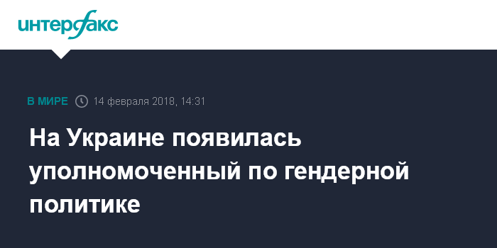 "Мы преодолели все многочисленные бюрократические преграды и наконец назначили первого правительственного уполномоченного по вопросам гендерной политики. Наконец все планы и начатые нами инициативы получат профессиональную поддержку правительственного уполномоченного", - написала вице-премьер по вопросам европейской и евроатлантической интеграции Украины Иванна Климпуш-Цинцадзе в фейсбуке в среду.