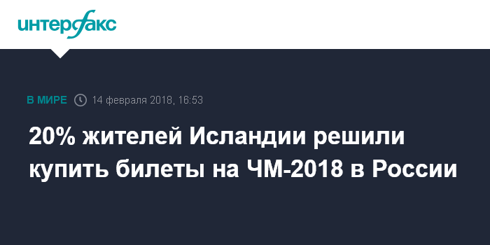 20% жителей Исландии решили купить билеты на ЧМ-2018 в России