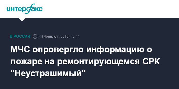 Москва. 14 февраля. INTERFAX.RU - Информация о пожаре на сторожевом корабле Балтийского флота "Неустрашимый", стоящем в ремонте на АО "Прибалтийский судостроительный завод "Янтарь" (ПСЗ), не соответствует действительности, заявила "Интерфаксу" заместитель начальника пресс-службы регионального МЧС Лина Кратюк.