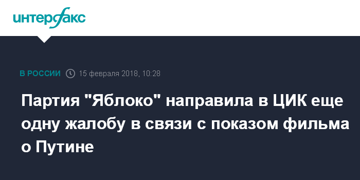 Партия "Яблоко" направила в ЦИК еще одну жалобу в связи с показом фильма о Путине