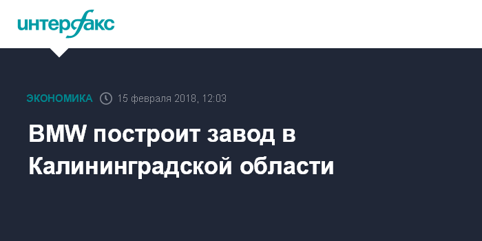 Москва. 15 февраля. INTERFAX.RU - Немецкий автопроизводитель BMW построит завод в Калининградской области, сообщил "Интерфаксу" представитель Минпромторга РФ.