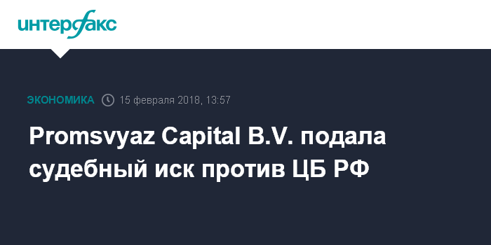 Promsvyaz Capital B.V. подала судебный иск против ЦБ РФ