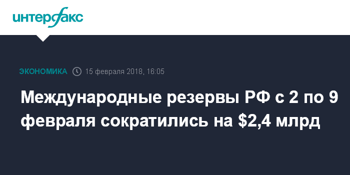 Международные резервы РФ с 2 по 9 февраля сократились на $2,4 млрд