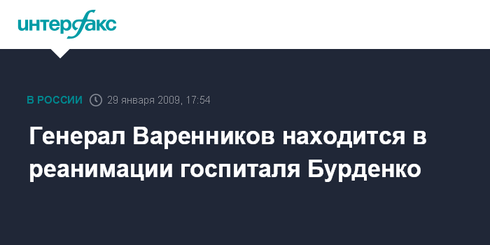 Генерал Варенников находится в реанимации госпиталя Бурденко