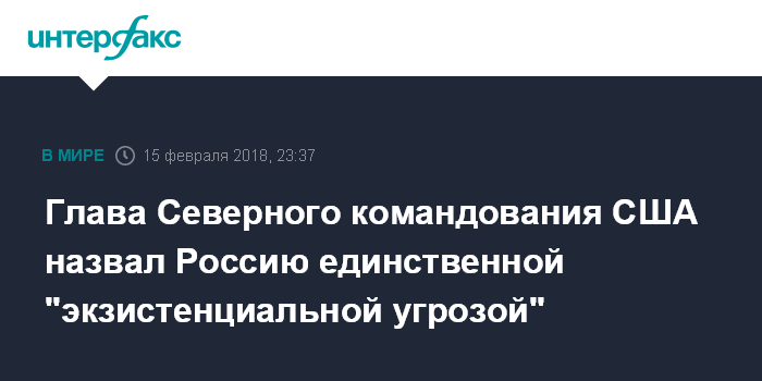 Глава Северного командования США назвал Россию единственной "экзистенциальной угрозой"