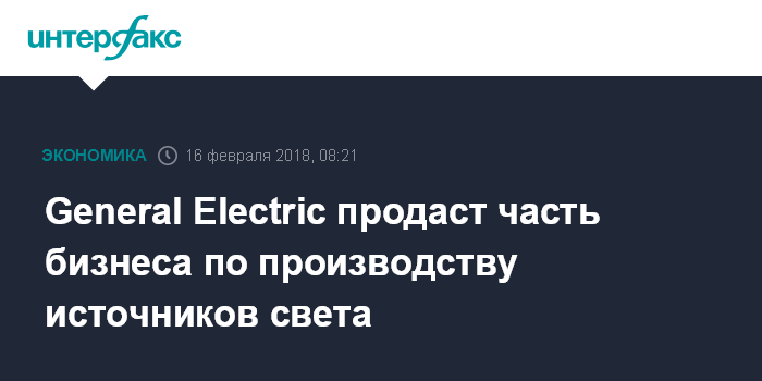 Москва. 16 февраля. INTERFAX.RU - General Electric Company договорилась продать часть своего подразделения по производству источников света, что стало первым шагом по полному выходу корпорации из этого бизнеса, сообщает Wall Street Journal.