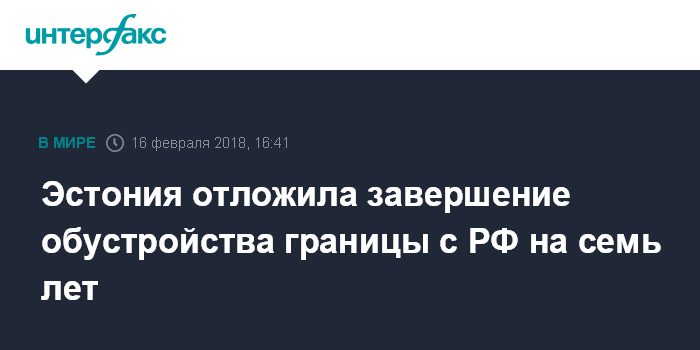Москва. 16 февраля. INTERFAX.RU - Правительство Эстонии из-за неожиданного удорожания обустройства границы с Российской Федерации решило отложить завершение работ до 2026 года вместе планировавшегося ранее 2019 года.