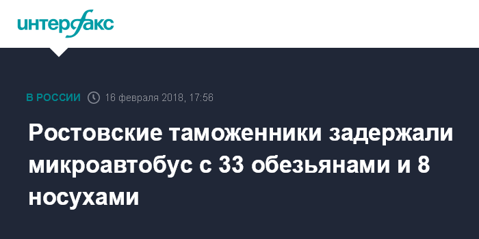 Ростовские таможенники задержали микроавтобус с 33 обезьянами и 8 носухами