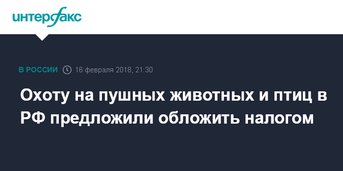 Москва. 16 февраля. INTERFAX.RU - Минприроды России предлагает ввести налог за охоту на пушных животных и птиц.