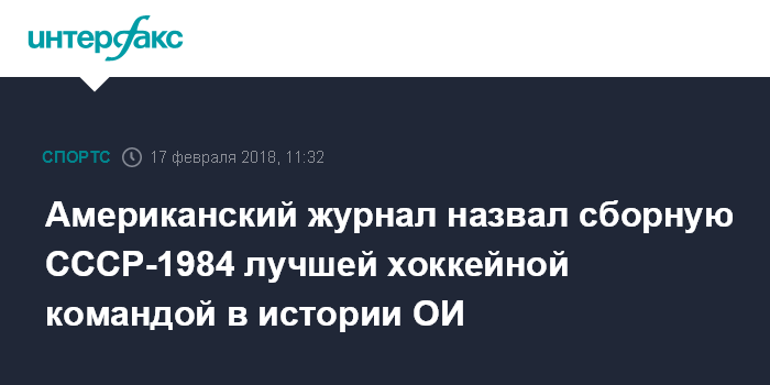 Москва. 17 февраля. INTERFAX.RU - Сборная СССР образца 1984 года является самой лучшей хоккейной командой за всю историю Олимпийских игр по версии американского журнала Athlon Sports.