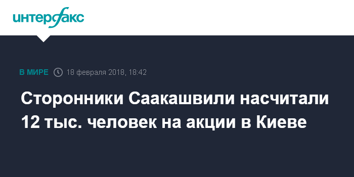 В то же время в комментарии "Интерфаксу-Украина" адвокат Саакашвили Руслан Чернолуцкий сообщил, что в акции приняли участие не менее 12 тыс. человек. "Людей было столько же, как и 10 декабря, после задержания Саакашвили. А по всей Украине на улице за отставку Порошенко вышли не меньше 100 тыс. человек", - отметил он.