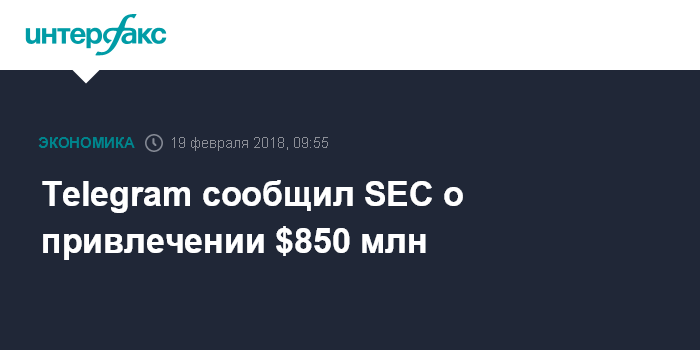 Москва. 19 февраля. INTERFAX.RU -Telegram Group Inc Павла Дурова и созданная им для проведения ICO компания TON Issuer Inc привлекли $850 млн от 81 инвестора. Об этом сообщили компании в своем первом раскрытии для Комиссии по ценным бумагам и биржам США (SEC).