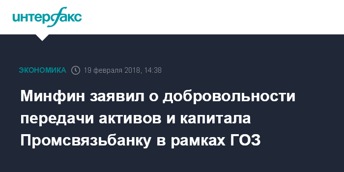 Минфин заявил о добровольности передачи активов и капитала Промсвязьбанку в рамках ГОЗ