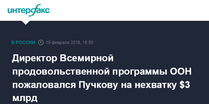 Директор Всемирной продовольственной программы ООН пожаловался Пучкову на нехватку $3 млрд
