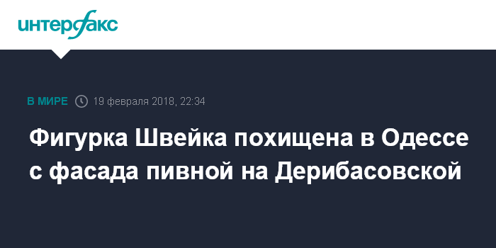 Корреспонденту "Интерфакса" в Одесском горсовете подтвердили факт кражи и заявили о намерении обратиться в полицию. "Могу сказать только то, что вчера он еще был. Сегодня его нет. Обратимся к правоохранителям", - отметила спикер горсовета Наталья Мальцева. Это уже второе похищение Швейка. Первое произошло весной 2017 года.