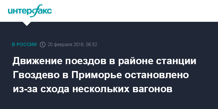 Движение поездов в районе станции Гвоздево в Приморье остановлено из-за схода нескольких вагонов