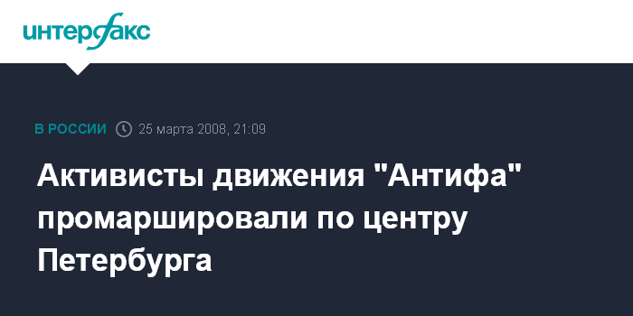 Санкт-Петербург. 25 марта. INTERFAX.RU - В центре Петербурга во вторник вечером прошла несанкционированная властями уличная акция движения "Антифа" в память об убитом в Москве антифашисте Алексее Крылове.