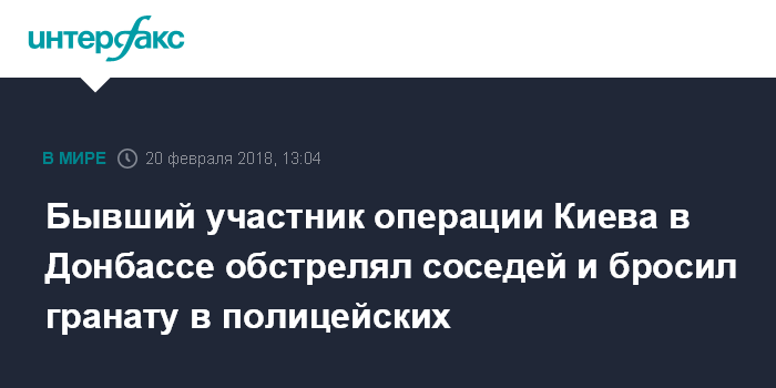 Бывший участник операции Киева в Донбассе обстрелял соседей и бросил гранату в полицейских