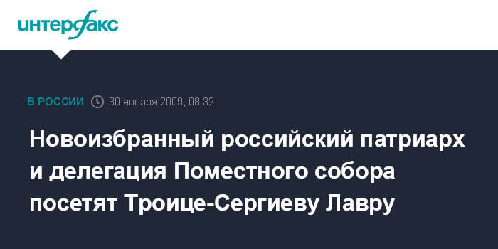 Новоизбранный российский патриарх и делегация Поместного собора посетят Троице-Сергиеву Лавру