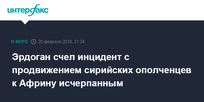 Эрдоган счел инцидент с продвижением сирийских ополченцев к Африну исчерпанным