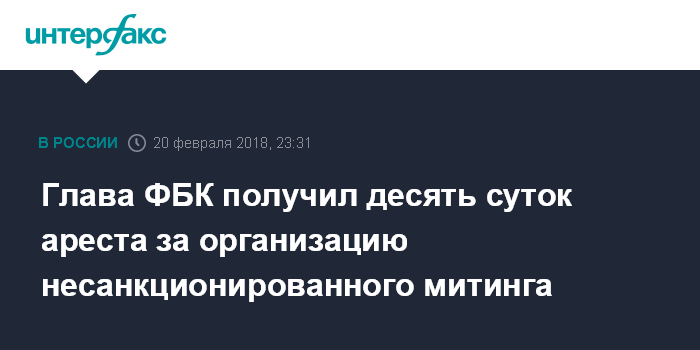 Глава ФБК получил десять суток ареста за организацию несанкционированного митинга