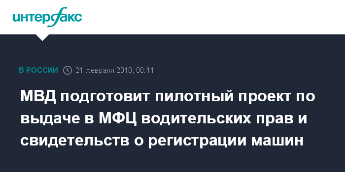 МВД подготовит пилотный проект по выдаче в МФЦ водительских прав и свидетельств о регистрации машин