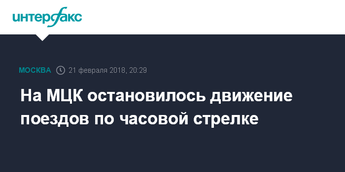 Москва. 21 февраля. INTERFAX.RU - По техническим причинам в среду вечером частично остановилось движение поездов на Московском центральном кольце, сообщили "Интерфаксу" в пресс-службе столичной подземки.